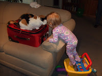 8:30-ish p.m.--Brylee tries to kiss kitty goodnight and heads off to bed, her parents not far behind her. It has been a very long day!